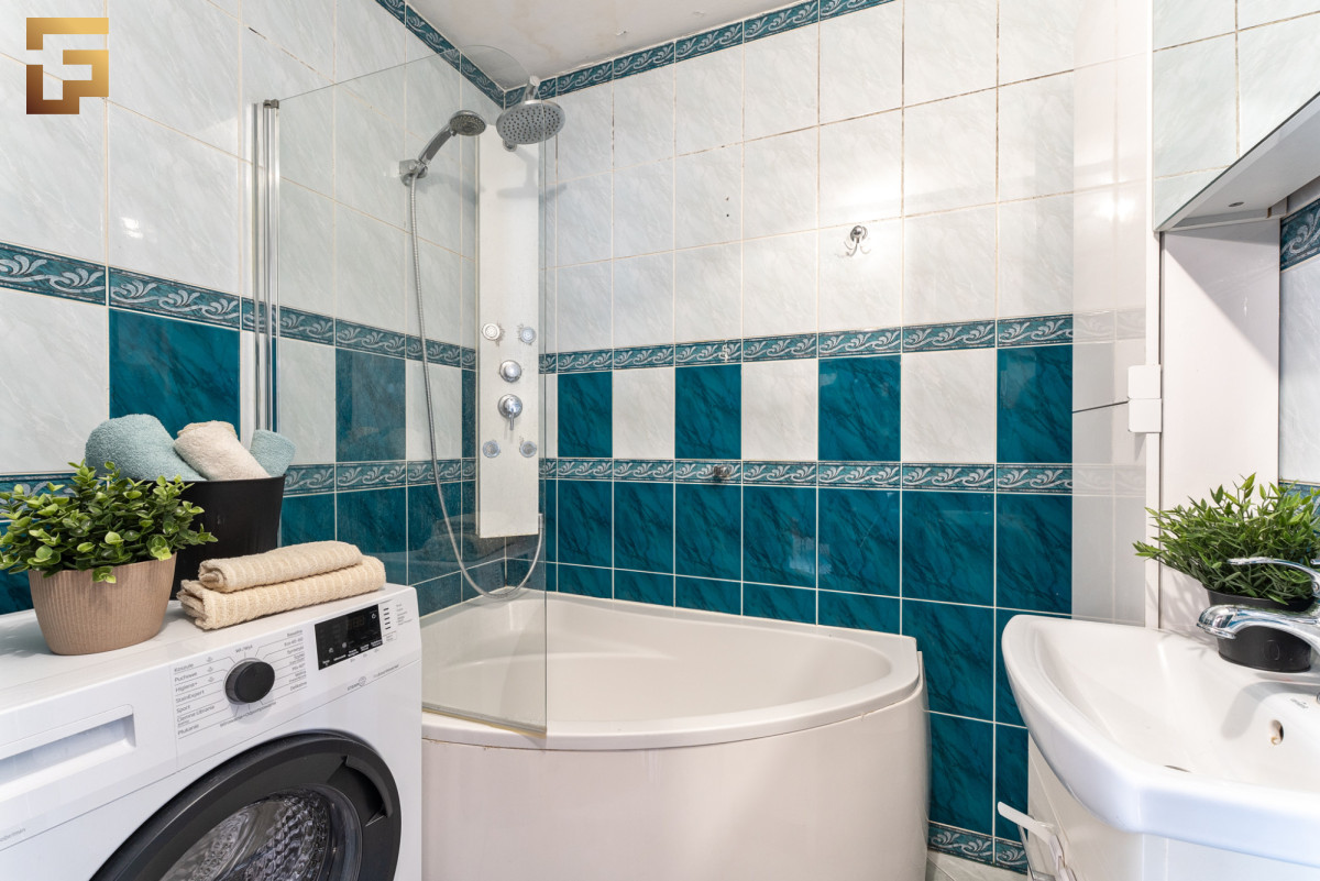 Rozkład mieszkania jest funkcjonalny i wygodny. Mamy do dyspozycji dużą kuchnię z oknem, co jest rzadkością w nowszym budownictwie - pomieszczenie jest dobrze doświetlone i praktyczne podczas codziennego użytkowania. Łazienka i toaleta są obecnie rozdzielone, jednak konstrukcja budynku pozwala na ich swobodne połączenie w jedną większą łazienkę.