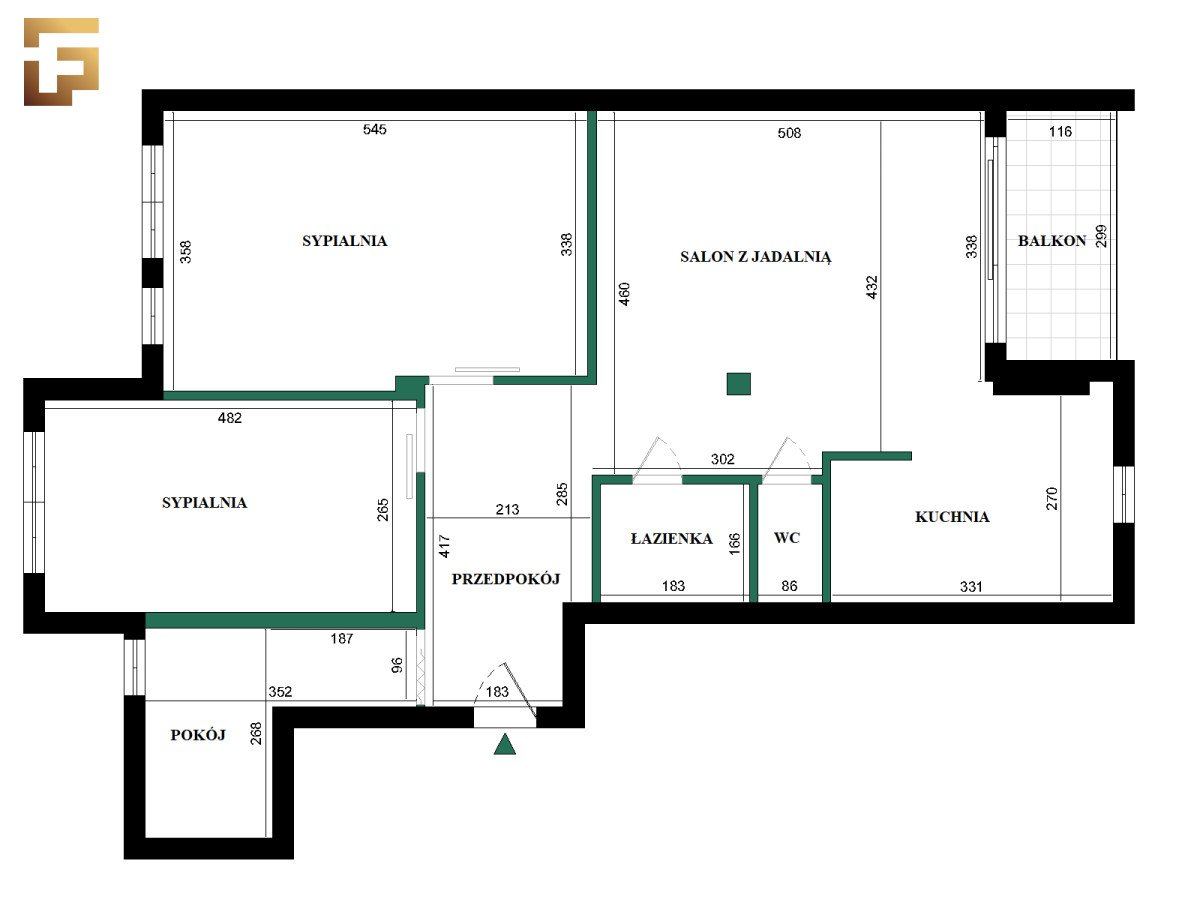 - Funkcjonalny układ i korzystne proporcje pomieszczeń