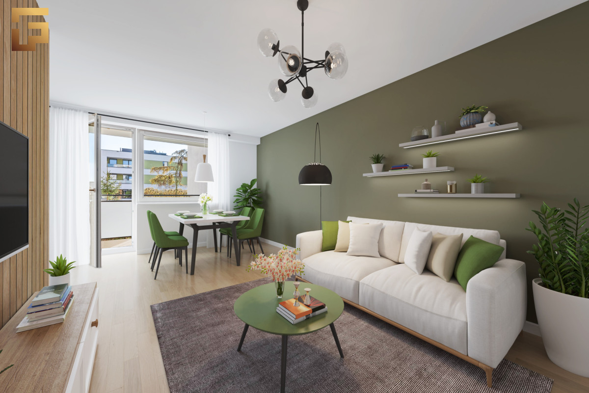 - Bliskość komunikacji miejskiej, sklepów, punktów usługowych, terenów zielonych;