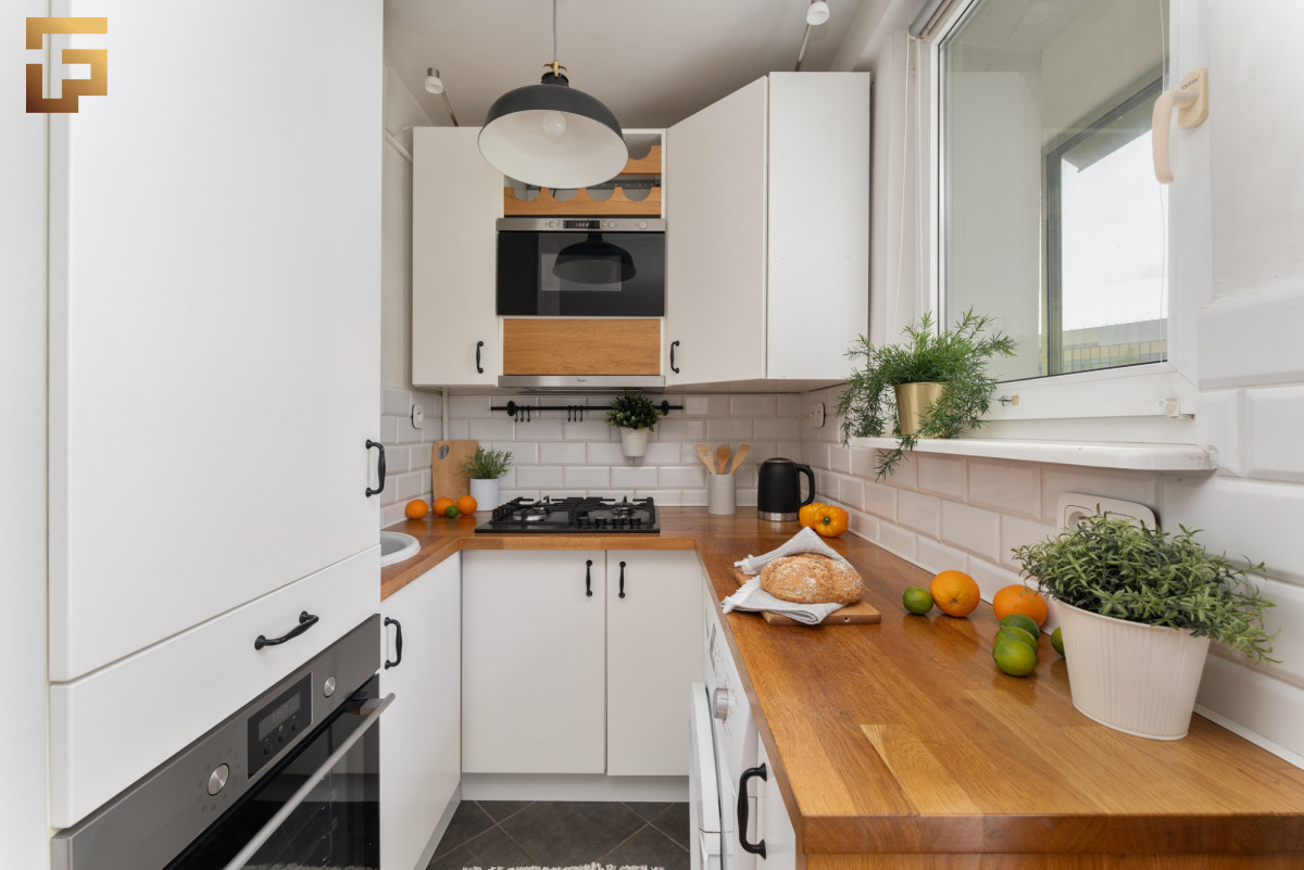 Niedawno wyremontowana kuchnia została starannie przemyślana — jest funkcjonalna, estetyczna i praktyczna. Znajdują się tu nowe fronty, blaty oraz sprzęt AGD, co pozwala przyszłemu właścicielowi na wygodne zamieszkanie bez dodatkowych nakładów.