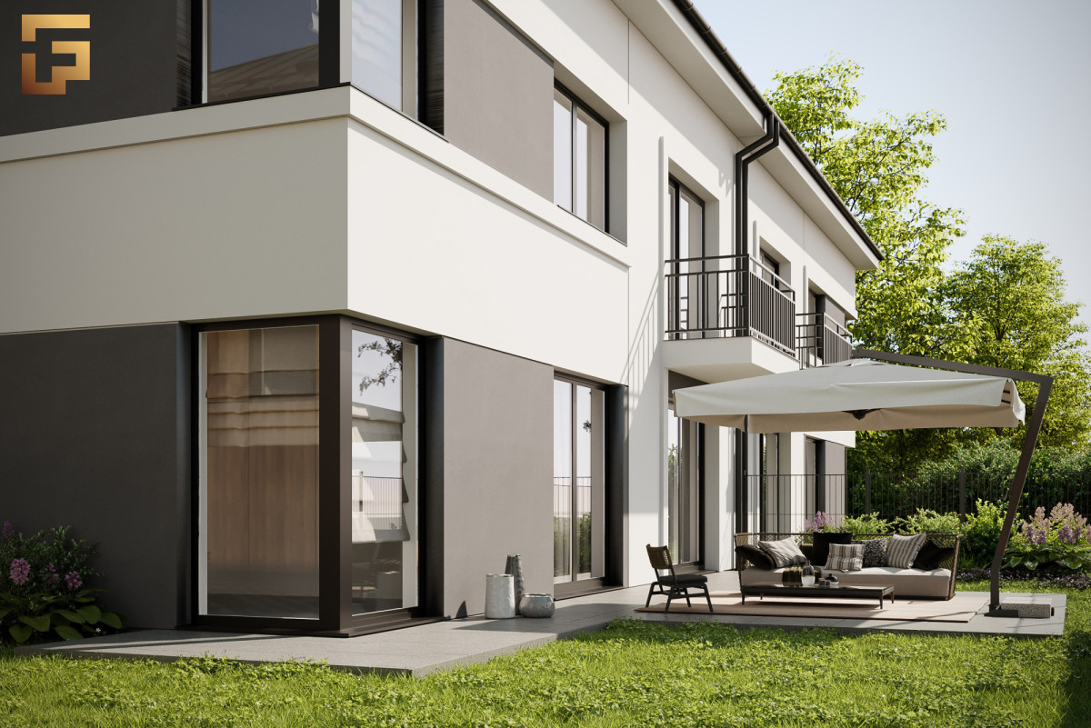 Cała inwestycja realizowana jest w bardzo solidnym, ponadprzeciętnym standardzie budownictwa. Elewacje budynków zostaną urozmaicone dekoracyjnymi płytami, które nadadzą im nowoczesny, designerski charakter i pozwolą uniknąć monotonii typowej dla zabudowy bliźniaczej. Zostanie również zastosowane wbudowane oświetlenie LED, które podkreśli wyjątkową estetykę inwestycji po zmroku. Teren osiedla zostanie starannie zagospodarowany - pojawi się bujna roślinność, elegancka kostka brukowa oraz dodatkowe oświetlenie, co stworzy przyjemną, bezpieczną i spójną przestrzeń do codziennego życia.