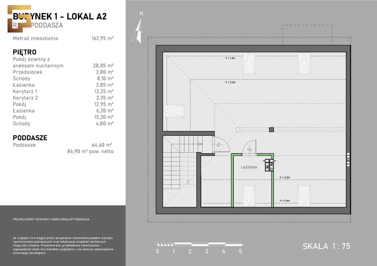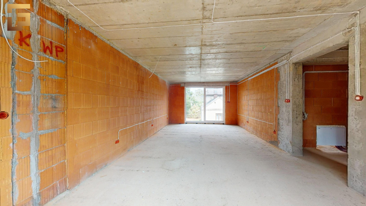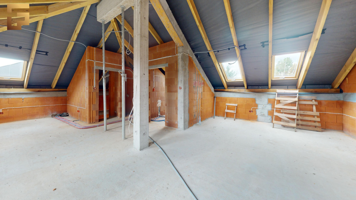 Powierzchnia 64,60 m² + łazienka 3,85 m² (86,90 m² po podłodze) z przygotowaną instalacją na dodatkową łazienkę.