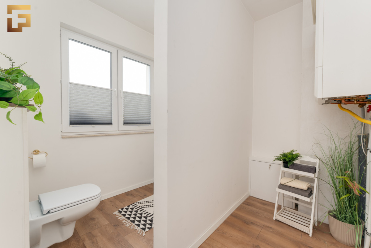 Na parterze znajduje się również łazienka połączona z pomieszczeniem technicznym. Funkcja tej przestrzeni może zostać dowolnie zaaranżowana przez nowego właściciela - jako pralnia, kotłownia lub dodatkowe zaplecze gospodarcze.
