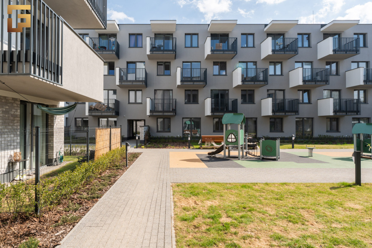 Deweloper zadbał o estetykę części wspólnych, spójną architekturę oraz funkcjonalność całej inwestycji. Kolejne etapy osiedla są w trakcie realizacji i planowane do oddania w 2027 roku — w tym przypadku mamy jednak możliwość zakupu mieszkania dostępnego od ręki, bez konieczności oczekiwania na zakończenie budowy.