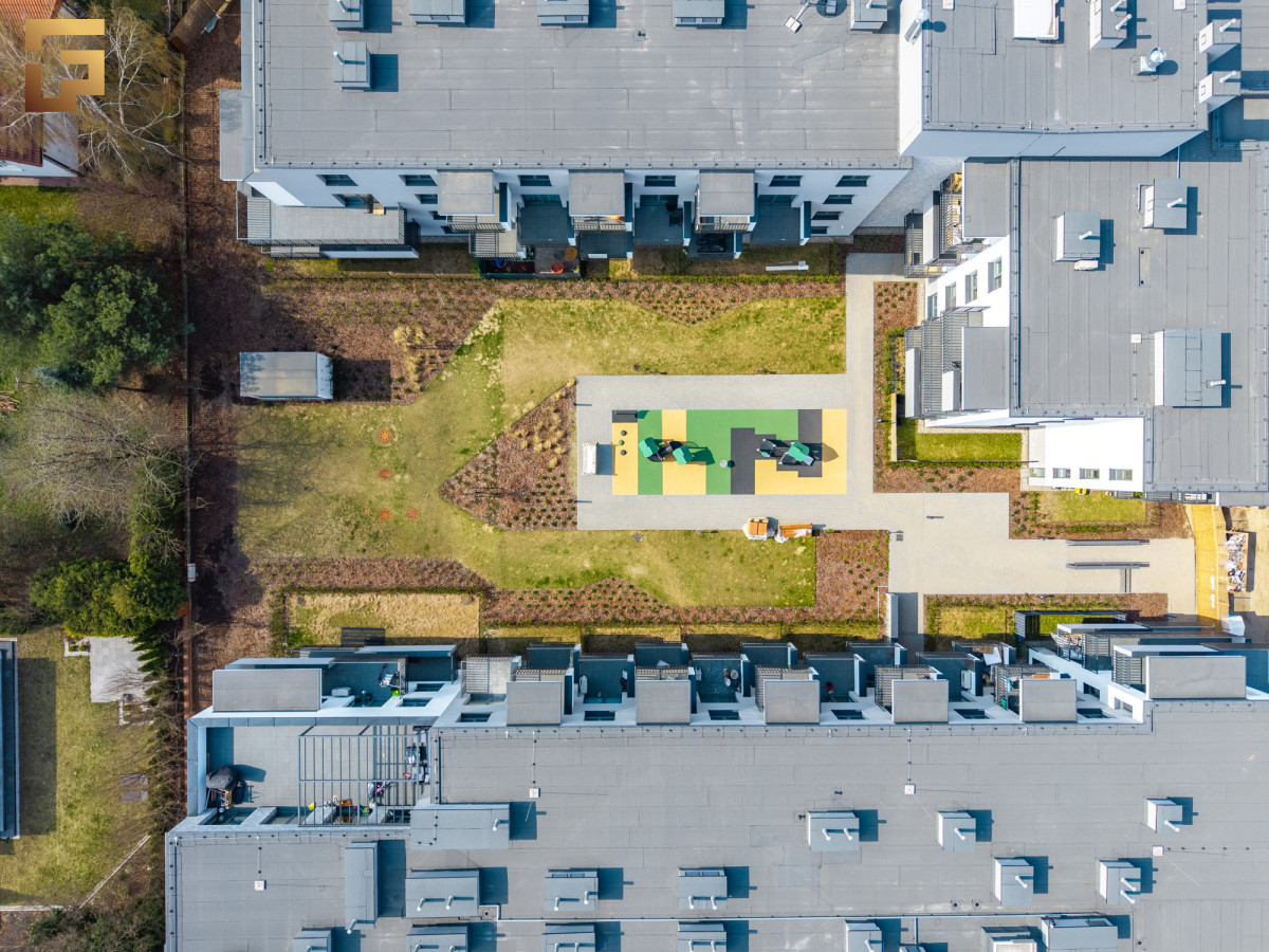 Prezentowana nieruchomość znajduje się na parterze, w ostatnim etapie realizacji osiedla, co przekłada się na spokojniejsze otoczenie oraz przyjemne sąsiedztwo zabudowy jednorodzinnej. To układ, który zapewnia większą prywatność i mniej intensywny ruch niż w centralnych częściach inwestycji.