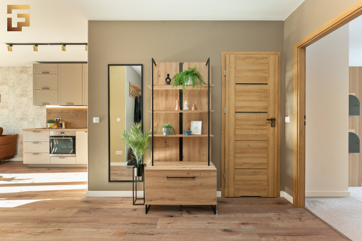 Wejście do mieszkania prowadzi przez przestronny przedpokój. Bezpośrednio z przedpokoju mamy dostęp do garderoby, gdzie możemy przechowywać odzież wierzchnią oraz przedmioty gospodarcze.