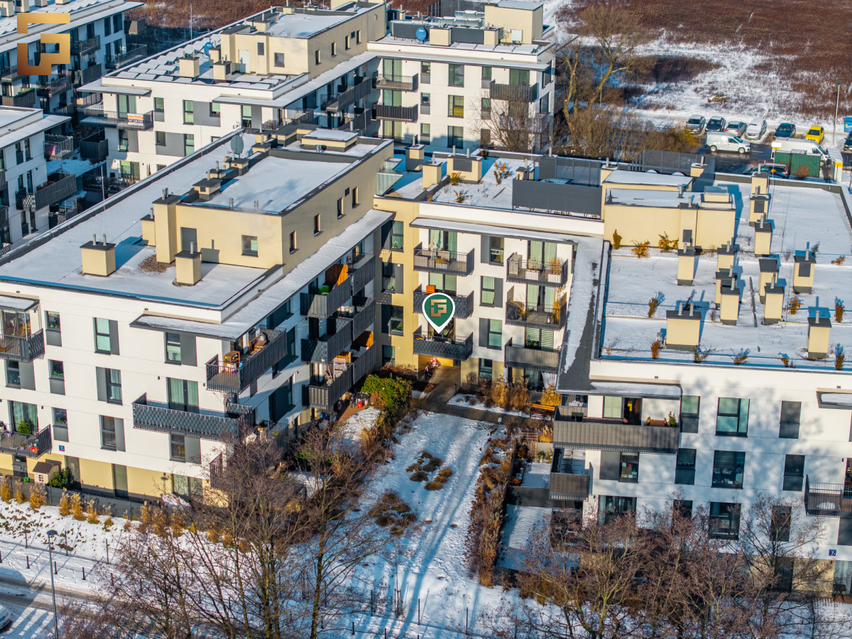 Osiedle oddane do użytku w 2023r. charakteryzuje się niską zabudową, zamkniętym terenem z całodobową ochroną i monitoringiem, co zapewnia bezpieczeństwo mieszkańcom. Wewnątrz osiedla znajduje się różnorodna roślinność, liczne ławki, staw oraz plac zabaw.